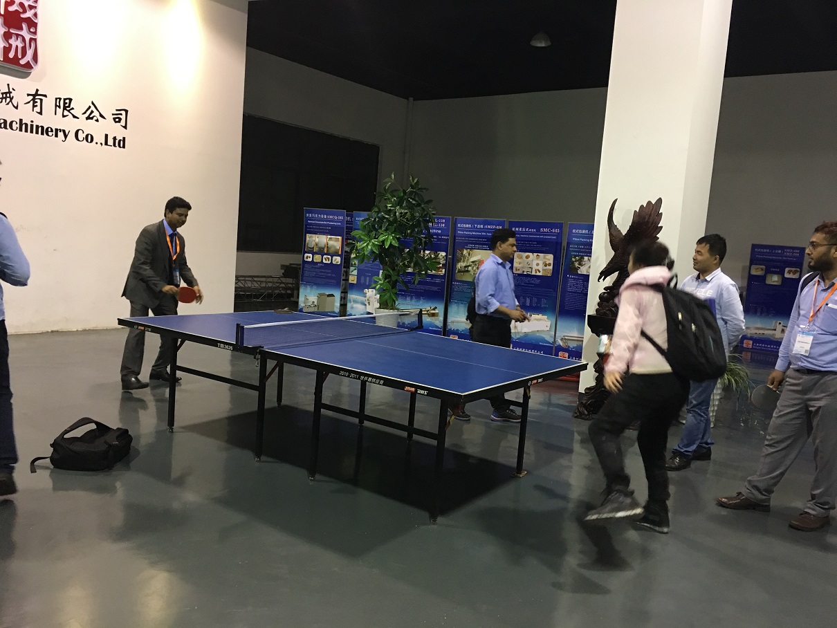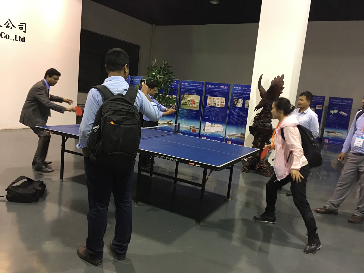 昨日印度客人一行4人,到訪我公司,現場做了測試, 對我們的成型機,膨化機,包裝機這一整套設備很滿意,當他看到我們的乒乓球桌時候,興致更高,忍不住露了一手,原來他們打乒乓球也挺厲害的。