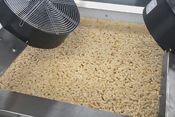 - 2017年10月19日,我公司迎來了德國(guó)客戶的現(xiàn)場(chǎng)驗(yàn)機(jī)。本次使用SMCP-70J擠出膨化機(jī)實(shí)驗(yàn),分別以大米、非洲糧食、玉米為對(duì)象;從實(shí)驗(yàn)結(jié)果看,星形米花的膨化度非常高,產(chǎn)量較大;非洲糧食膨化的成型效果最佳,成品率高;玉米的膨化效果相比大米而言,顏色更加鮮艷,呈淡黃色,比較有食欲感;...