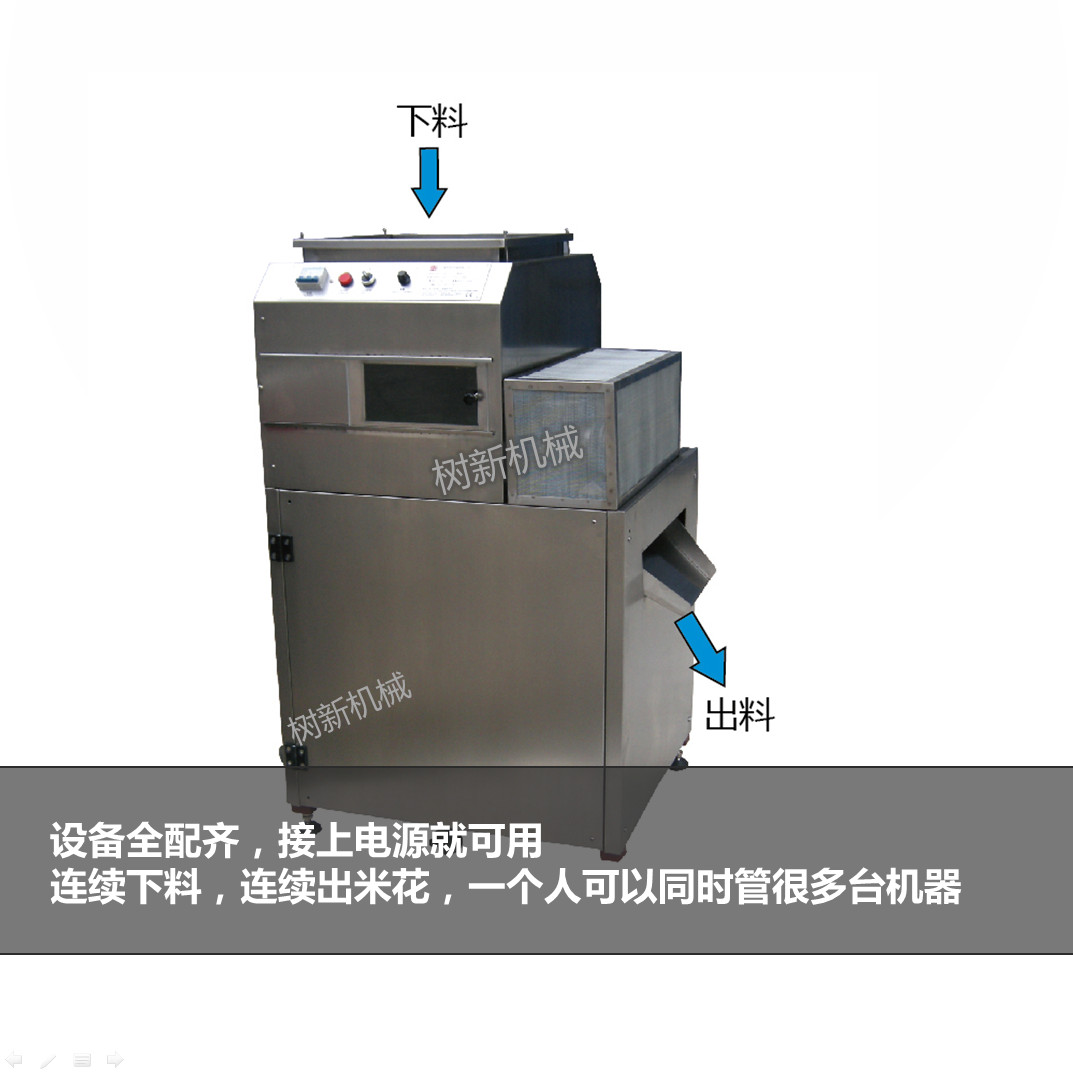 適合膨化大米,玉米,綠豆等谷物,可做成大小不同形狀各異的米花,機器產量可達100KG每小時,高配置,耐用,操作簡單,值得購買。