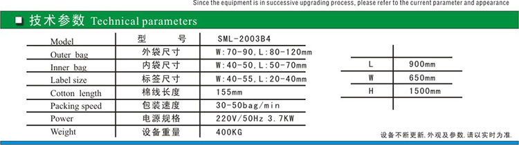 SML-200是袋泡茶專用的包裝機(茶葉包裝機,茶葉自動包裝機),能實現內袋,外袋,標簽,棉線一次性完成,人手不用接觸就自動完成了。機器自動化非常高,計量準確。您也可以根據需求,單獨選擇內袋的包裝。