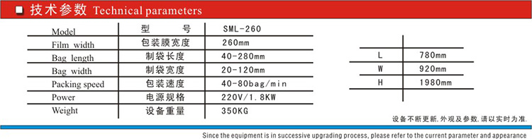 SML-260 立式包裝機包裝液體膏體(適應對象:液體,膏體類,如醬油,洗發水,果凍果汁等) |